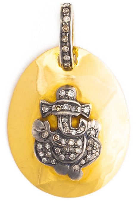 Colgante Ganesha en oro de 18 quilates con detalle de diamantes en bruto de plata esterlina oxidada