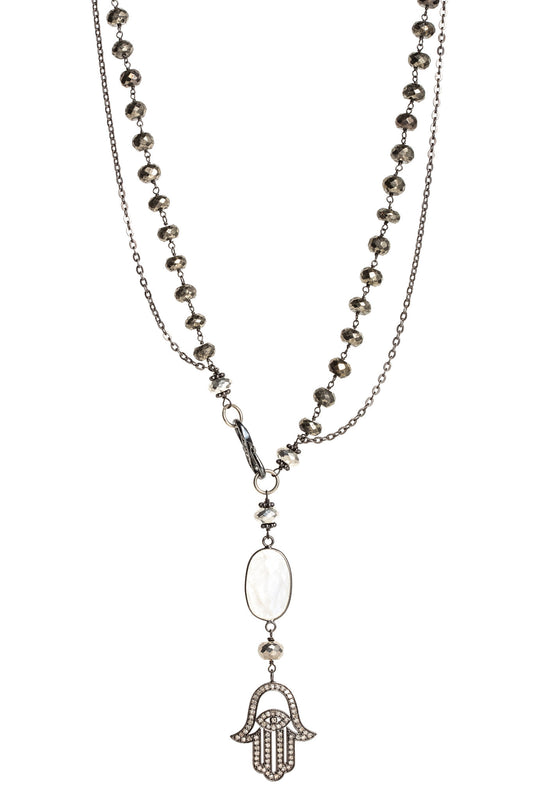 18K Gold Ganesha Pendant with Oxidize Sterling Silver Rough Diamonds Detail